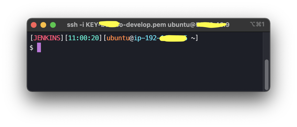 위에 작성해둔 예시로 예를 들어보자면, USER=JENKINS, PS1은 위와 동일하게 작성한다면 다음과 같은 형태로 프롬프트 창이 바뀌게 된다.