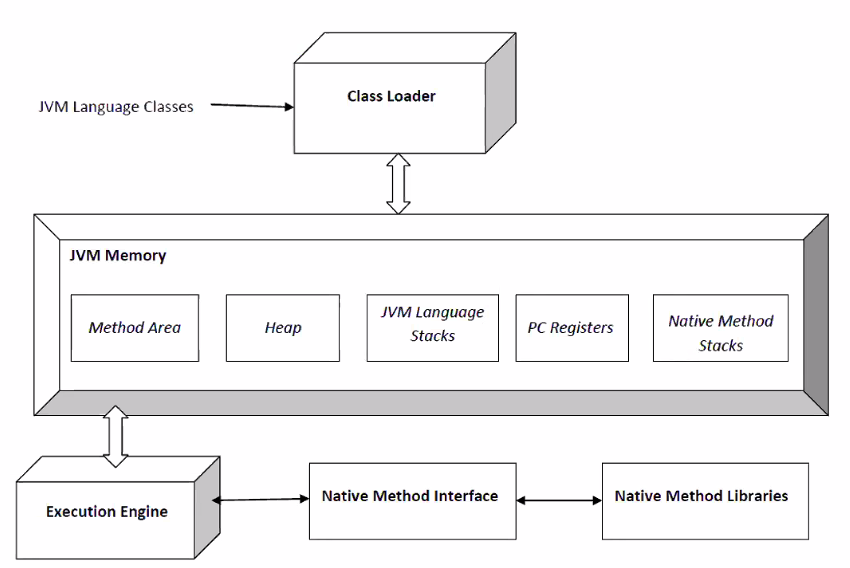 바이트 코드를 읽고 메모리의 힙 영역에 저장하는 Class Loader과 네이티브 코드로 변환시키고 GC를 실행하는 실행 엔진으로 구성되어있다.
