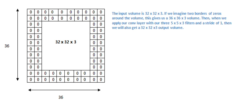 - Padding - 결과값의 소실을 막기 위해 입력값 주위로 0을 넣어 결과값이 작아지는 것을 방지하는 기법